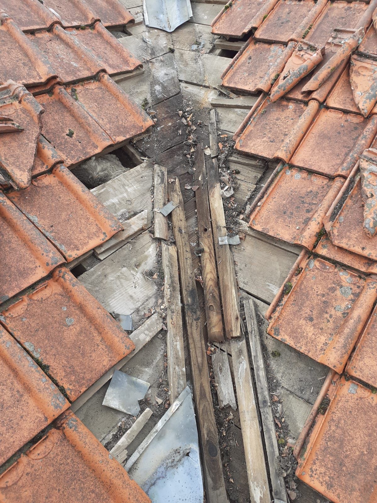 - Détérioration ou déplacement des tuiles, ardoises ou tôles.